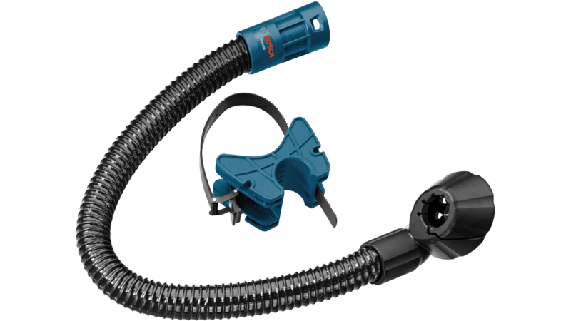 The HDC400 dust collection attachment provides a unique dust collection system for breaker hammers. The ski-boot clamping band makes installation on the tool a snap. The clamp housing allows the attachment to be installed on the tool so that the dust collection shroud can be positioned near the chisel tip for optimum dust extraction. The clamp housing also can be adjusted up or down on the tool to accommodate a small variety of chisel lengths. The system also allows the dust collection shroud to float up or down should it make contact with the work piece during use. The dust port fits Bosch 1-3/8 In. vacuum nozzles but can also fit 1-1/4 In. to 2 In. nozzles with the appropriate adapter.